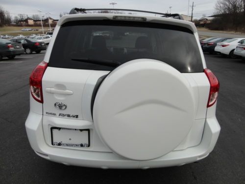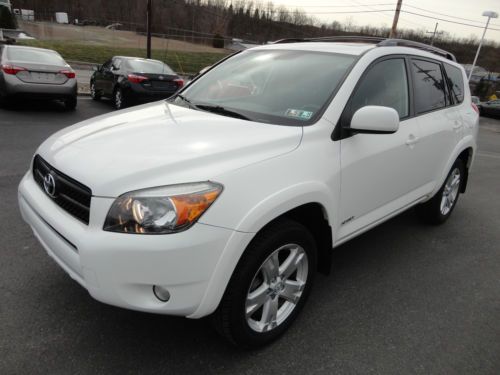 THANK YOU FOR VIEWING OUR 100% CARFAX CERTIFIED, JUST ARRIVED ON TRADE, 2007 TOYOTA RAV4 SPORT EDITION 2.4L 4 CYLINDER FRONT WHEEL DRIVE WITH POWER MOONROOF, 6-DISC CD CHANGER, ETC IN SUPER WHITE CLEARCOAT PAINT WITH BLACK SPORT FABRIC SEATS AND ONLY 75,167 ORIGINAL MILES! WE ARE A TOYOTA DEALERSHIP IN WESTERN PENNSYLVANIA AND WE ARE OFFERING THIS SUPER CLEAN RAV4 SPORT AT A SPECIAL, DISCOUNTED 'BUY IT NOW' PRICE ON EBAY FOR A VERY LIMITED TIME. PLEASE VIEW THE COMPLETE LISTING INCLUDING 24 PHOTOS. WE ALSO INCLUDED THE ORIGINAL WINDOW STICKER IN THE VIDEO & PHOTOS PROVIDED. PLEASE CONTACT SCOTT LONG @ (866)226-0570 OR (814)659-1908 OR EMAIL TO LAUFORD@AOL.COM WITH ANY QUESTIONS. THANK YOU FOR VIEWING AND BE SURE TO VIEW ALL OF OUR EBAY LISTINGS ALONG WITH OUR 100% POSITIVE FEEDBACK!