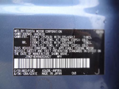 VIN (Vehicle Identification Number): JTMZF4DV8AD026827