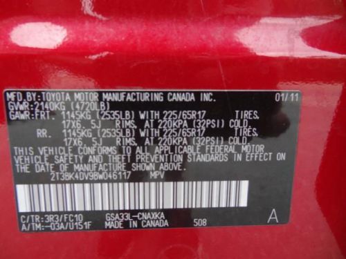 VIN (Vehicle Identification Number): 2T3BK4DV9BW046117