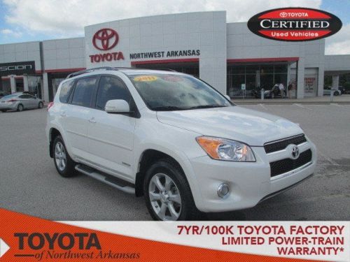 Looks Fantastic! WHEEL ALIGNMENT COMPLETED, OIL CHANGED, NEW ENGINE AIR FILTER, NEW CABIN AIR FILTER, MULTI-POINT INSPECTED, BRAKE INSPECTION, AND VEHICLE DETAILED! Carfax One Owner! Satellite Radio. Low miles with only 31,823 miles! This near new Toyota RAV4 Ltd has a great looking White exterior and a Beige interior! Our pricing is very competitive and our vehicles sell quickly. Please call us to confirm availability and to setup a time to drive this RAV4! We are located at: 411 South Metro Parkway, Rogers, AR 72758. Arkansas's Largest selection of used and Certified Toyota vehicles. Come see for yourself how Toyota of Northwest Arkansas's honest and upfront approach will change the way you buy a New Toyota.