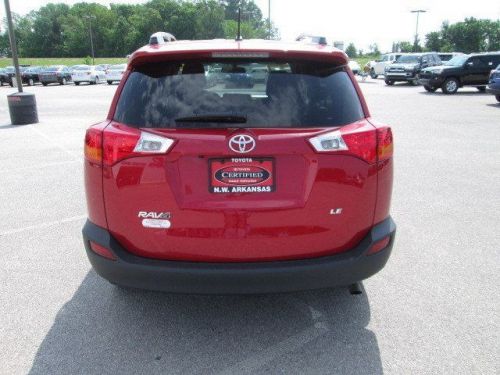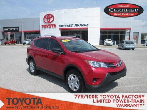 Looks Fantastic! OIL CHANGED! Carfax One Owner! 31 MPG! Low miles with only 10,736 miles! This near new Toyota RAV4 LE has a great looking Red exterior! Our pricing is very competitive and our vehicles sell quickly. Please call us to confirm availability and to setup a time to drive this RAV4! We are located at: 411 South Metro Parkway, Rogers, AR 72758. Arkansas's Largest selection of used and Certified Toyota vehicles. Come see for yourself how Toyota of Northwest Arkansas's honest and upfront approach will change the way you buy a New Toyota.
