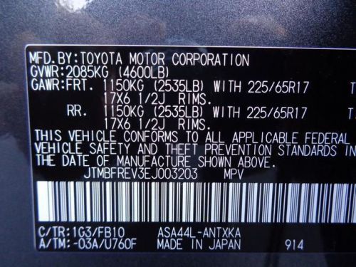 VIN (Vehicle Identification Number): JTMBFREV3EJ003203