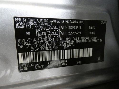 VIN (Vehicle Identification Number): 2T3A1RFV9NC297301
