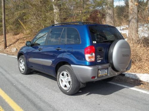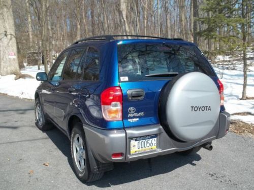 In late 2003 we decided on purchasing this Rav-4 because it was consumer Rated at (8.7), the second best compact SUV that could be purchased at the time (Honda being first). Used exclusively by my wife for every day errands, country driven it has less than 10K miles a year on it (which included our yearly trip to Fl) It has proven dependable both in summer and especially with it’s AWD during the PA winters. Now 10 years later we have no regrets in our decision, and have decided to purchase a new one. Always garaged it has been regularly maintained (engine and trany fluids changes, filters, etc) with new batteries, tune ups, brakes and tires as needed. The 4 cyl engine is very economical, and is rated at 22mpg city and 27mpg highway, using regular gas. We have had no mechanical or electrical problems with it, and there were no factory recalls on this model. Other than your typical parking lot scratches, the body has never been damaged or repaired. Just the two of us, non smokers, no children, grand children or pets, the interior is very clean. Plenty of cargo space with the rear seats folded down and even more if you pop them out completely. Fully equipped with many convenience options, it has always been safe, comfortable and reliable to drive. Also includes original owner’s manuals. Recently serviced and the inspection is good until 5/14/14. Additional photos are available upon request. Vehicle located 8 miles north of the PA Turnpike, Exit 286 (Reading-Lancaster). This vehicle is being sold as-is – where is, with no warranty expressed written or implied. Seller reserves the right to stop the auction at any time, with the exception of the last 12 hours as per Ebay rules. Any questions, it’s best to email us or call 484-638-0440. Winning bidder please contact us via email immediately at the end of the auction for verification. Our requirements are that the high bidder should pay an immediate deposit of $500.00 through Pay Pal and the car should be paid in full within 3 days, via cashiers check, cash in person or money order. Car can be picked up after payment clears our bank. Full time AWD Premium sound system AM/FM/CD/ Cassette Map Light Air Conditioning Power Rack & Pinion Steering Anti-lock Brakes Power Locks Disc Front/Drum Rear Brakes Power Windows Child Proof Door Locks Rear Window Wiper Clock Rear Defroster Compass/Temp Gauge Security System Courteously Lights Tachometer Cruise Control 3rd Brake Light Dual Power Mirrors Tilt Steering Floor Mats Tinted Glass Keyless Entry Trip Odometer Halogen Headlights Vanity Mirrors Interval Wipers Auxiliary Outlet Front & Rear Mud Guards Roof Rack 14.7 Gal Gas tank Full size spare Tire with Hard Cover 16” BF Goodrich All Weather Radial Tires Tow Capacity 1500lbs Tonneau Cover Adjustable Manual Front Seat 4 Wheel Independent Suspension 16” Steel Wheels |