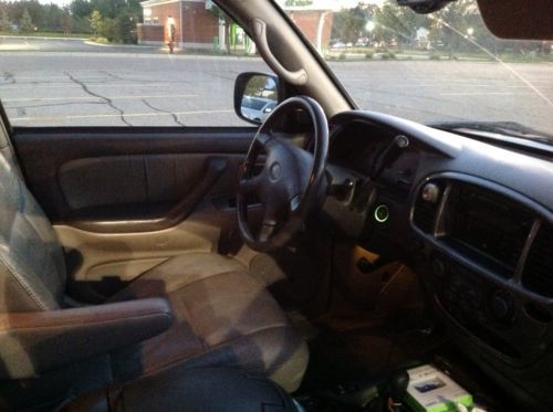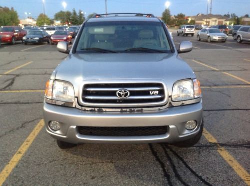 Nice Toyota Sequoia limited edition with leather interior , heated front seats, 4x4 , In dash cd changer with all the bells and whistles that come with this powerful SUV . Vehicle has 294k miles mostly from inter state highway drive , paint chips in the front , Car is mechanically sound and can drive from coast to coast without any problems , Air & heat works great . I just bought a newer model and won't be paying insurance on two SUV's that's why am selling . No reserve as highest bidder wins it . Clear title & one of the lowest priced out there ..