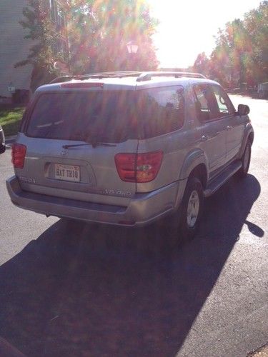 2002 Toyota Sequoia SR5, 186,271 miles, 4WD, Sunroof, Towing Package, Power Windows and Locks, Rear Heat & A/C, Front Bucket Dual Power Seats, Third Row Removeable Seats, 8-passenger, Roof Rack, Information Center (w/ compass & temp), New Tires, Well Maintained, Wheel Locks, etc. I have had this truck for 7 years. I have had the oil changed every 3,000 miles while I have been the owner. The check engine light is currently on, I had the code read and it needs a Oxygen O2 Sensor (This has not affected the way the truck rides and drives). The clip on the power seat molding needs replaced and two of the power window buttons need replaced (The power seats and power windows all still work). This truck has been extremely well maintained. The condition of the truck is extra clean considering the mileage. I am a non smoker. It has a current 7/14 Virginia Inspection Sticker. I am asking $7,950. Serious inquries only...this truck is too nice for ridiculous offers.