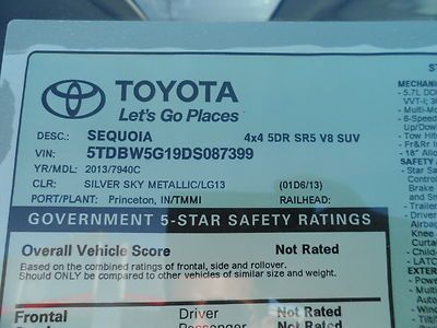 Hail Sale New 2013 Toyota Sequoia 4x4 Sr5 Save Over $7200 on 2040-cars