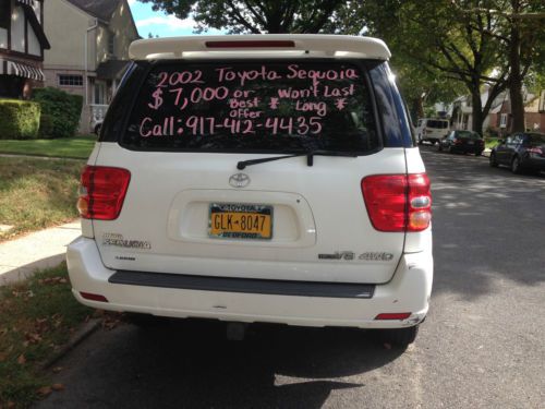 You are bidding on a 2002 Toyota Sequioa limited edition V8. The car is in excellent condition. The title is clean, and it only has freeway mileage. THe car has only been owned by two owners, but runs very smoothly. SERIOUS BUYERS ONLY!! YOU GET WHAT YOU SEE!! ALL SALES ARE FINAL!!! THE BUYER IS RESPONSIBLE FOR PICK UP!!! We accept all form of payments. Please message me for any questions, or concerns regarding this auction. If you feel it's an urgent question than please call/text me at 347-754-8356. HONEST SELLER SO BID WITH CONFIDENCE!!! |