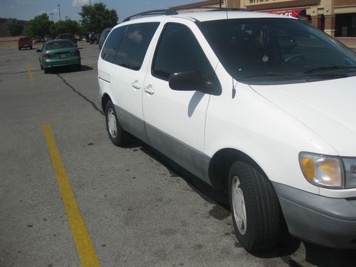 Selling my 2000 Toyota Sienna V6 3.0L FOUR-CAM MPFI 24-VAL in excellent mechanical condition has 158k..its in an excellent condition inside outside...hv replaced timing belt, excellent shocks,no cv axle issue ..02 sensor has replaced no check engine light.. new tires & viper..very cleaned inside outside 7 seater...AC/Heater, Sliding Door...excellent gas mileage ..hv huge space..there is no work need to be done ..very nice fully maintained..there is small minor dent on top of rear light hit by pole...no rust ..if you have any question feel free to contact me NO RESERVE...for more info call me 9188514421
