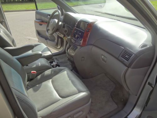 NEEDS A NEW FAMILY FULLY LOADED, NOTHING MISSING, ALL OPTIONS INCLUDED LEATHER, REAR ENTERTAINMENT AND THE WORKS PERFECT MINIVAN FOR A NEW FAMILY NEEDING ONE TIRES AND BRAKES DONE LAST YEAR. DEALER INSTALLED, NOT AFTERMARKET MICHELIN TIRES, BEST IN BUSINESS FOR A FAMILY VEHICLE CLEAN CARFAX-MISTAKE ON ACCIDENT DUE TO FRAUDULENT CLAIM NORMAL WEAR DUE TO FAMILY USE LOCALLY DRIVEN, IN SUBURBS AND FAMILY ROAD TRIPS YOU WILL NOT FIND CLEANER SIENNA AROUND ENOUGH SAID, IT IS PERFECT INSIDE AND OUT TAKE ADVANTAGE BEFORE IT GOES ON TRADE FOR A NEW ONE |