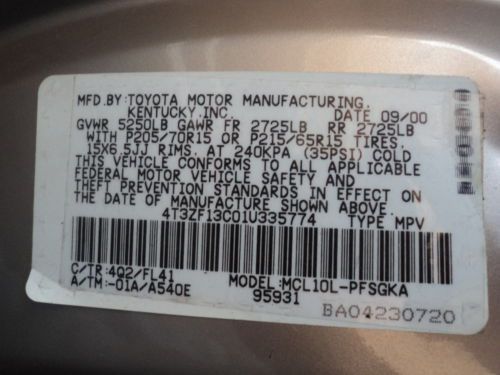 2003 toyota sienna ce mini passenger van 5-door no reserve auction / warranty