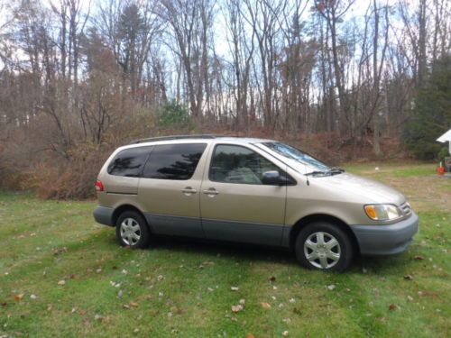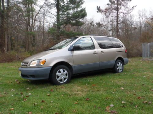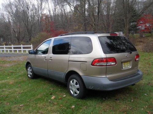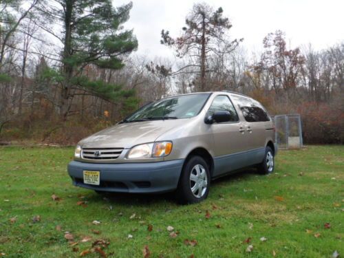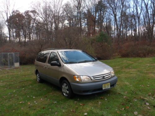 UP FOR SALE IS A VERY CLEAN, EXCELLENT RUNNING 2002 TOYOTA SIENNA CE. CLOTH INTERIOR, DUAL SLIDING DOORS, ONE OWNER, NO ACCIDENTS, WELL MAINTAINED, TIRES ARE ALMOST NEW, BRAKES ARE GOOD, RUNS EXCELLENT, EVERYTHING WORKS WELL, HEAT & A/C WORK GOOD. HAS GOOD NJ INSPECTION TILL END OF 2014. INTERIOR AND EXTERIOR ARE CLEAN. GET IN AND GO. CALL/EMAIL/TEXT. 2O14OO7258.