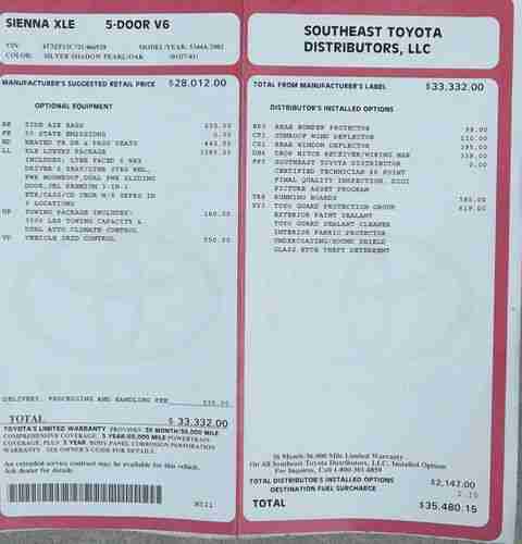 2002 TOYOTA SIENNA XLE MINIVAN. Fully Loaded !!! This has been my daily driver for the last year. Originally purchased for hauling kids. Sunroof, Power everything, power doors, 6 disc factory JBL sound system, 3rd row seating, Leather heated seats, dual Ice cold AC, Factory tow package. Have the Original window sticker of over $35,000.00. Overall condition is very good for its age. 2 brand new tires and two 3 months old, brand new brakes, new motor mount, front axle, Catalytic converter and new battery. All within the last year. Timing belt and water pump done at 130,000 miles (per previous owner) 185,000 miles. Miles will increase as this is my daily driver. Clean interior but there are a few various carpet stains from 11 years of use. No tears in headliner. One small 1/2" tear in leather passenger seat. All headlights, tail lights, brake lights and blinkers work and replaced in last year. Passed emissions in February. Various tiny dings And tiny dents. Bumpers do have a little peeling paint from parking lots incidents.(see pics) Runs and Drives smooth. Clean and clear title in hand. Possible trade. Looking for Honda or Toyota 4 cylinders? No Junk and must be in similar condition. I am willing to trade up or down for the right car.