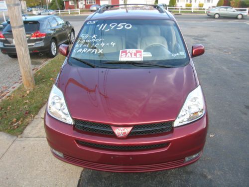 2005 Toyota Sienna XLE - All Wheel Drive - 54,752 One Owner CarFax Documented Miles One minor repair on the driver side rear quarter panel in 2007, for a minor parking lot dent. Repair and paint work were done professionally and is virtually undetectable. 2 new tires and brakes. This truck is the real deal. Looks like new inside and out. Has a tiny dimple on the passenger side door (too small to see in the pictures) and a minor scuff mark on the front bumper (again very minor and may not be detectable in the photos). This van belonged to a non-smoker and was garaged all it's life. Leather interior is mint. Has "run-flat" tires (I am not sure if they are standard or optional on this model). Bid with total confidence and drive it home. If you wish to preview the vehicle it is located in East Meadow, Long Island. This is NOT a flood car and the owners address is nowhere near a flood zone! This vehicle comes with a 60 day New York State Lemon Law Warranty. You can throw the warranty in the garbage if you want - you will not need it! After all, this is a 54K miles Toyota.
