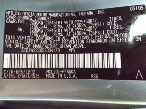 2005 TOYOTA SIENNA XLE LIMITED