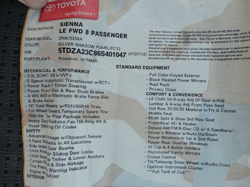 2006 Sienna Le 8 Passenger Power Sliding Door 1owner Clean Carfax Youtube Video on 2040-cars