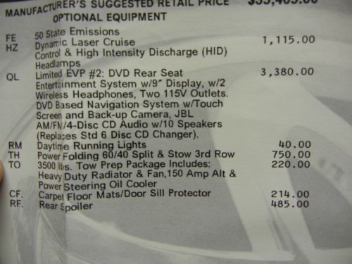Options: REAR DVD WITH 2 HEADPHONES, AND REMOTE, HID HEADLIGHTS, ADAPTIVE CRUISE CONTROL, HEATED SEATS, REAR SPOILER, ALLOYS, POWER SIDE DOORS, POWER REAR HATCH, REAR A/C, QUAD SEATING, POWER FLIP/FOLD 3RD ROW SEATING, ROOF RACK, ORIGINAL WINDOW STICKER AND MANUALS, 2 MASTER KEYS..1 VALET KEY..2 REMOTES, Sunroof, Leather Seats, CD Player