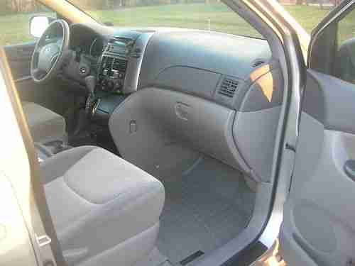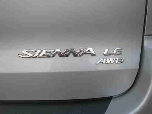 Super clean 2010 Toyota Sienna LE AWD with 28 K Miles. This is a privately owned vehicle that has had excellent care. Silver exterior paint finish, gray cloth interior, matching gray carpets, and door panels are like new. The 3.5 l ( 6 cylinder) engine runs strong and smooth. Body is clean and straight. (Front apron has a few small stone chips.) Alloy wheels are clean and nice. Tires are in very good condition. All accessories work well. Features include power/remote locks, power doors (front and side), power driver's seat, cruise control, pulse wipers, CD (6 disc) with MP3, dual power outlets, mats (carpet in rear/WeatherTeck in front). roof rack, power rear side windows, etc. Pennsylvania inspection through December 2013. No disappointments. Please email or call (717-321-3149) with questions. Thanks for your consideration of this nice vehicle!
