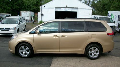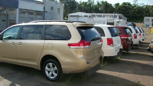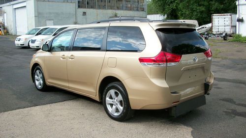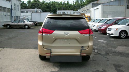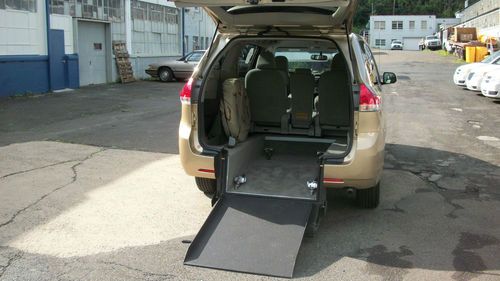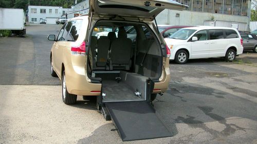 Offered today by Kenny's Auto Sales, 820 Welsh Road, Huntingdon Valley, Pa. 19006 is a 2011 Toyota Sienna LE Rear Loading Wheelchair Van that is in good condition. It is Gold with a Light Gray Cloth interior and has 52500 miles. This unit was purchased from a large Car Rental Company and was converted by American Mobility Transport in Dec. 2012 and the rear Wheelchair Passenger section has never been used. This is a highly modified Handicap Wheelchair Van featuring a lowered rear floor center section and a manually lowered rear wheelchair axcess ramp with a "state of the art" latching system with a central release that locks the ramp solidly in the upright position for rattle free vehicle operation. The rear floor tie area has mounts and tie down straps for one wheelchair passenger. This is a fully optioned Sienna LE with a V-6, Automatic Transmission, Back Up Camera, Power Side Doors, Front and Rear A/C and Heat, Power Drivers Seat, Power Windows and Locks, Remote Entry with one Key Fob, Cruise Control and AM/FM XM Satellite Radio CD Player. This Van has had some previous paint work on the left and right sides and the paint match is not the best, but it is very presentable and clean and shows no signs of any major body repair. This Van is is clean and dry underneath and is rust free and in good conditon. It Runs and Drives beautifully, has been recently serviced and safety checked and can be driven anywhere. Please call Kenny at 215-938-9333 for more details and information on this Van. Kenny's Auto Sales 215-938-9333. We are located just outside of N.E.Philadelphia These AMT Vans are mainly manufactured for the Taxi and Car Service industry and are built stronger and rust proofed better than any other competing product out on the market today.They are designed for commercial use and and for years of trouble free service. Please give Kenny a call at 215-938-9333 for more information.