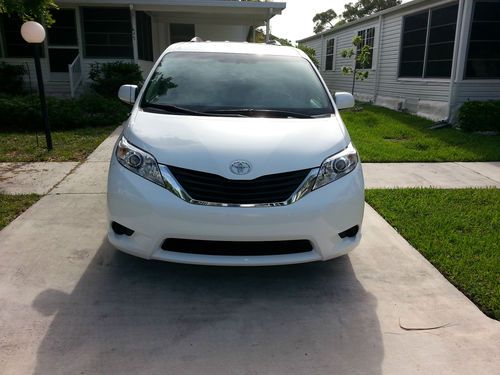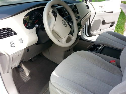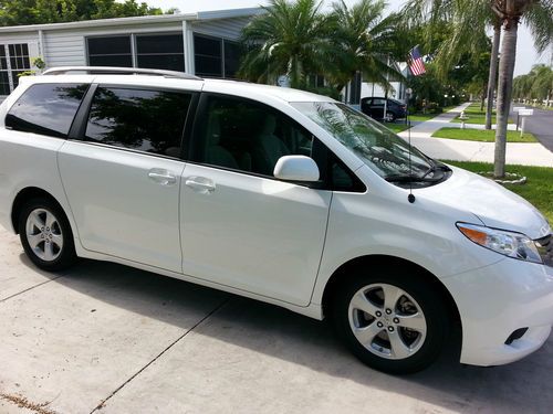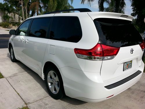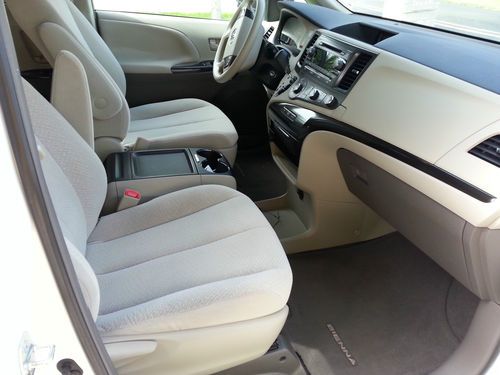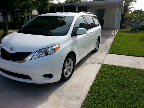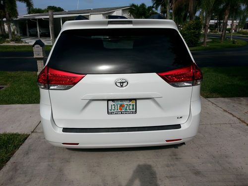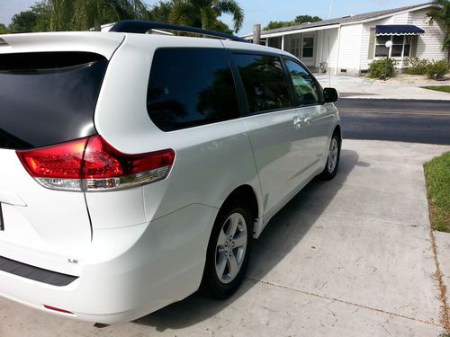 FOR SALE BY ORIGINAL OWNER! 2011 TOYOTA SIENNA LE....WHITE WITH BISQUE (TAN) INTERIOR...IT HAS THE V6 ENGINE AND HAS ONLY 33,538 MILES ON THE CLOCK...THIS IS ALL HIGHWAY MILEAGE.....CLOTH INTERIOR....REAR CAMERA....CD....A/C.....BLUETOOTH....GARAGE DOOR OPENER....3RD ROW SEATING.....ROOF RACKS. THIS VEHICLE IS ADULT DRIVEN....SMOKE-FREE....PET-FREE....AND CHILD-FREE. IT RUNS BEAUTIFULLY AND IS IN MINT CONDITION!!!!! I HAVE ALL BOOKS AND SERVICE RECORDS. VEHICLE WAS SERVICED EACH AND EVERY 5,000 MILES AT LIPTON TOYOTA. I TAKE CARE OF ALL MY CARS AND THIS SIENNA IS SUPER CLEAN. IT LOOKS JUST LIKE NEW AND I CAN GUARANTEE THAT YOU WILL NOT BE DISAPPOINTED BUYING THIS VEHICLE. I LEASED THIS SIENNA FROM LIPTON TOYOTA AND LEASE END IS JUST A FEW MONTHS AWAY. IF YOU HAVE ANY QUESTIONS, PLEASE FEEL FREE TO SEND ME AN EMAIL. BUYER PAYS SHIPPING FEES AND I WILL ASSIST YOU IN ANY WAY POSSIBLE TO MAKE THIS AS SMOOTH AND HASSLE-FREE TRANSACTION AS POSSIBLE. THANK YOU, J.