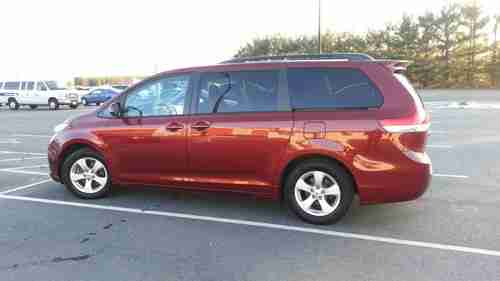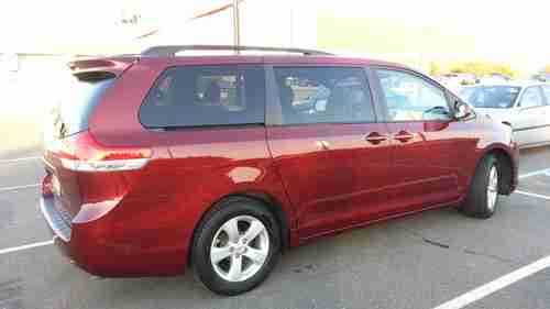 Salsa Red with gray cloth interior. Coming off lease in May 2013. 84,400 mostly highway miles. Very Good condition, newer Goodyear Assurance Comfort Tred All Season Tires, 4 wheel alignment, all new brakes, dual DVD players (one in second row, one in 3rd row, linked together so you can watch the same DVD or operate independent of each other) and special power supply in 3rd row directly connected to battery with fuse for powering gaming device (they require clean power and amperage not attainable from cigarette lighter connection). Comes with 4 wireless headsets (may actually have 5 will have to check) and 2 game controllers with built in games, Serviced since new at Gateway Toyota, all maintenance up to date and always performed. No accidents! Clean Car Fax. Great family vehicle, 8 passenger seating with removable middle 2nd row seat that stores in the trunk area. Floor mats throughout as well as in trunk. AM/FM/MP3/CD Sirius/XM Satellite Radio with steering wheel controls, Blue Tooth Audio controls on steering wheel also, backup camera, front and rear a/c with rear seat controls, window shades in 2nd and 3rd row. Gets great gas mileage, I average 21-24 city/highway mix. 25-30 on the highway depending on load and speed. I love the versatility and ride of this Sienna, handles nice, rides comfortable, and is easy to drive. Only selling to get another Sienna, may decide to keep this one since it is in great condition and nicely equipped. Lease is through Toyota, so they have the title, purchase will be made through Toyota. Asking less than the payoff amount. email with any questions.
