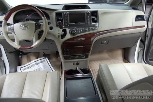 1-OWNER 2011 TOYOTA SIENNA LIMITED ALL WHEEL DRIVE VAN TRADED IN HERE AT MODERN MOTORCARS. PEARL WHITE WITH NAVIGATION, REVERSE CAMERA, BLUETOOTH, REVERSE SENSORS, SPLIT VIEW WIDE SCREEN REAR DVD, DUAL POWER SLIDING DOORS, POWER LIFTGATE, HEATED SEATS, 2ND ROW BUCKETS, REAR SHADES, DUAL SLIDING MOONROOF FRONT AND REAR, PUSH BUTTON START AND MORE. FULL SET OF WEATHER TECH MATS. CALL 888-615-2538 TODAY TO GET MORE INFORMATION OR TO BUY THIS VEHICLE TODAY. MODERN MOTORCARS IS OWNED BY DON HUNSAKER. WE DO TAKE TRADES. MATTER OF FACT, WE WANT THEM WE OFFER FINANCING. WE CAN BEAT MOST RATES/TERMS WE HAVE WARRANTIES AVAILABLE ON EVERYTHING WE SELL WE WANT YOUR VEHICLE EVEN IF YOU DON'T BUY FROM US MODERN MOTORCARS IS FAMILY OWNED AND OPERATED ALL PICTURES AND A HISTORY REPORT ARE AVAILABLE AT WWW.MODERNMOTORCARS.COM WE ARE LOCATED 3 MILES SOUTH OF SPRINGFIELD ON CAMPBELL/160 HWY AT CC HWY. JUST 2 DOORS DOWN FROM GODFATHERS PIZZA