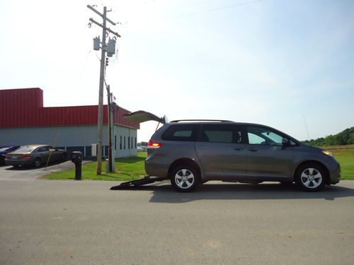 UP FOR SALE IS A 2011 TOYOTA SIENNA WHEELCHAIR/HANDICAP REAR ENTRY WHEELCHAIR CONVERSION VAN. THIS VAN HAS THE ATS ADVANTAGE RE L SEMI FLAT FLOOR REAR LOADING SYSTEM. IT HAS THE ALL NEW 36 INCH WIDE RAMP AT THE ENTRY POINT. THE VAN HAS THE Q-STRAINT WHEELCHAIR/HANDICAP RESTRAINT SYSTEM WHICH INCLUDES FOUR RETRACTABLE WHEELCHAIR STRAPS AND FULL WHEELCHAIR HARNESS SYSTEM. THE RAMP IS DUAL LOCKING, NON SKID,ADA COMPLIANT WITH THE PATENTED ATS SHOCK ASSIST SYSTEM. THE RAMP STOWS AND DEPLOYS WITH EASE AND CAN BE USED BY ANYONE. THE WIDE RAMP SYSTEM WILL ALLOW FOR LARGE WHEELCHAIRS OR SCOOTERS. THE VAN IS FULLY ADA COMPLAINT AND WILL PASS ALL COMMERCIAL REGULATIONS. THE VANS INTERIOR IS WELL KEPT WITH NORMAL WEAR. THE EXTERIOR IS ALSO NICE WITH NORMAL WEAR. THE VAN JUST HAD ASE INSPECTION AND SERVICE WITH NO ISSUES FOUND. THE VAN SHOULD STILL HAVE THE TOYOTA POWERTRAIN WARRANTY IN PLACE. THE CONVERSION ALSO IS UNDER THE ATS THREE YEAR WRITTEN WARRANTY. THE VAN RUNS AND DRIVES GREAT AND IS ONE OF THE BEST RIDING WHEELCHAIR VANS I HAVE DRIVEN. WE CAN FIANANCE PERSONS WITH APPROVED CREDIT BUT YOU MUST CALL FIRST FOR CREDIT CHECK BEFORE BUYING. PLEASE HAVE ALL FUNDS SECURED BEFORE BUYING AND BE READY TO MAKE THE 500.00 NON REFUNDABLE DEPOSIT WITHIN 24 HRS OF AUCTION ENDING. FULL PAYMENT IS DUE WITHIN 7 DAYS OF AUCTION ENDING. WE CAN SHIP VAN ANYWHERE AT BUYERS EXPENSE BUT UNIT MUST BE PAID IN FULL BEFORE IT SHIPS. WE ALSO OFFER DELIVERY TO THE LOUISVILLE KY OR NASHVILLE TN AIRPORTS FOR BUYERS DAILY. FOR QUESTIONS EMAIL OR CALL RON @ 270 634 0721 OR ROB @ 270 634 1466. REFER TO LOT 1771 WHEN CALLING. THANKS