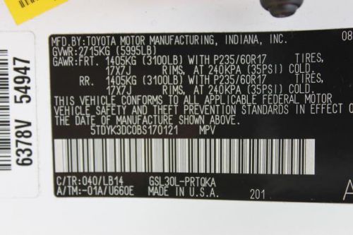 VIN (Vehicle Identification Number): 5TDYK3DC0BS170121