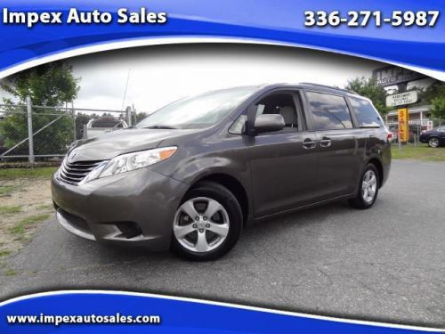 ONE OWNER!! This 2012 Toyota Sienna LE is equipped with the following options: automatic transmission, power windows, power door locks, cloth seats, am/fm cd player, alloy wheels, dual air bags, air conditioning, cruise control, keyless entry and much more!! CALL 888-489-3487 TODAY!! Impex Auto Sales is the Triad's LARGEST independent Pre-Owned dealer! Now accepting all major credit and debit cards! Visa, MasterCard, Discover, and American Express! Because we sell so many cars, trucks, motorcycles, and commercial vehicles, our prices are the ABSOLUTE LOWEST!!! We are a family owned and operated business serving the Carolinas since 2004. Contact us at 888-489-3487 or ImpexAutoSales.com.We pride ourselves on our reputation for honest service and delivering quality automobiles. Come by today and let us show you how purchasing a pre-owned vehicle SHOULD BE! We offer free shuttles from Greensboro's Piedmont-Triad International Airport (GSO), Greensboro Amtrak Station (GRO), and the Greensboro Greyhound Bus Terminal. We respect and honor your time so we can ship autos all over the United States and export all over the world! Don't trust just anyone to transport your new car! Our experienced partners in the shipping industry to Africa, Asia, South America, North America, and Europe makes us the Most Dpendable in the industry. Contact us for a shipping quote and get your vehicle fast! We are proud to have sales representatives fluent in English, Spanish, French, Arabic, and Japanese for the convenience of our valued customers. *****Please note, while we make every effort to ensure that our vehicles are listed accurately, we are not responsible for errors or omissions. Please verify all options, colors, vehicle condition, pricing and AVAILABILITY prior to purchase.****** We have a hassle free business approach that provides a relaxed and comfortable environment for our customers. Sell us your car even if you don't buy from us! We don't play the games that other dealers do: If you sell or trade to us, you get the same price! Come in today for a quick appraisal! They generally take no longer than 15 minutes! Stop by and get the best deal on a used car, guaranteed!