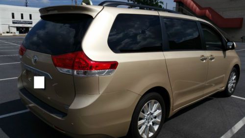 What's New for 2012For 2012, the Toyota Sienna's XLE trim gains additional standard features, notably a power passenger seat and automatic headlights. IntroductionWith its cavernous interior and bevy of available comfort and convenience features, the modern minivan is second to none as a family hauler. The Toyota Sienna has long been one of the segment's most capable picks, and last year, it got a top-to-bottom redesign that makes it even more compelling. Relative to the previous generation, the current 2012 Toyota Sienna presents buyers with a wider range of choices. It can be had with a four-cylinder engine for those who want higher fuel economy, and there's the SE trim level with a sport-tuned suspension for more responsive handling. Other highlights include a split-screen video monitor for the rear-seat entertainment system and available recliner-style seating for the second row. The Sienna also has a smooth ride and a quiet cabin in its favor, and the available V6 brings spirited acceleration. All-wheel drive is offered, a plus for those who frequently slog through rain and snow; the Sienna is the only minivan to offer this feature. Another bonus is the Sienna's ability to seat up to eight passengers. This Van is practically brand new with no issues or problems. Clean title in hand, complete with manufacturer's warranty (3 year or 36k miles). Currently with 19,350 miles, this minivan comes fully loaded with DVD, Navigation, Dual Moonroof, Captains seats, reclining seats in back, Leather seats, climate control, AUX/MP3, and much more. |