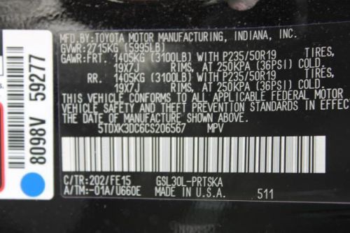VIN (Vehicle Identification Number): 5TDXK3DC6CS206567