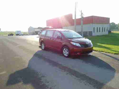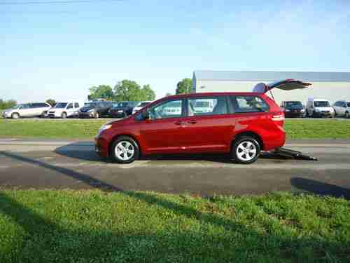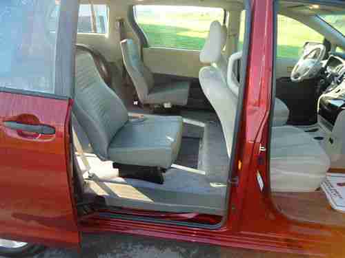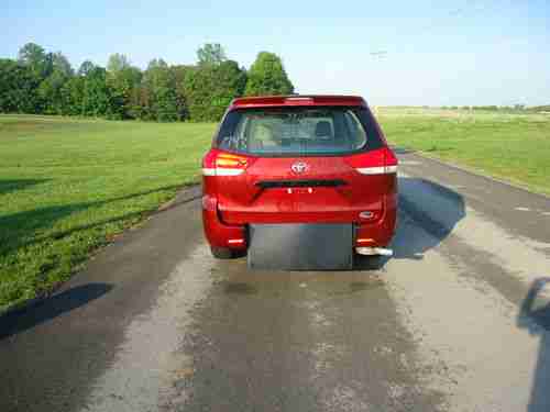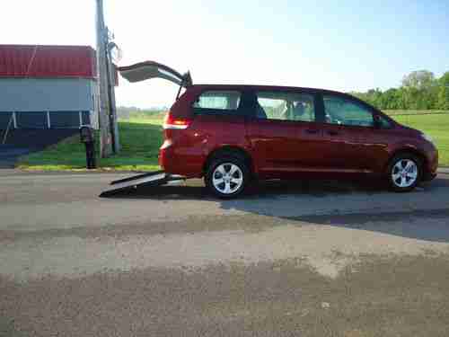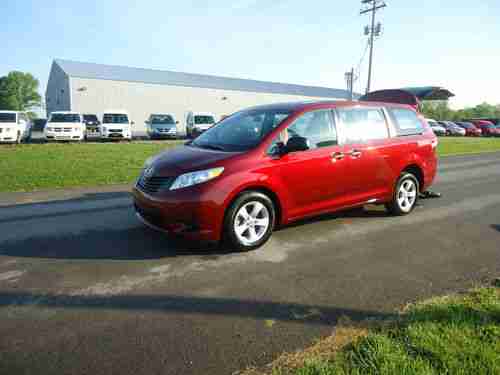 UP FOR SALE IS A 2012 TOYOTA SIENNA LE WHEELCHAIR/HANDICAP RAMP VAN. THIS VAN HAS THE ATS ADVANTAGE RE L LOWERED FLOOR REAR ENTRY WHEELCHAIR CONVERSION. THE VAN HAS THE MANUAL,DUAL LOCKING, NON SKID, ADA COMPLIANT RAMP WITH THE ATS PATENTED SHOCK ASSIST SYSTEM. THE RAMP STOWS AND DEPLOYS WITH EASE AND IS 36 INCHES WIDE. THIS VAN LETS YOU TRANSPORT LARGER WHEELCHAIRS OR SCOOTERS. THE VAN COMES WITH ONE COMPLETE Q-STRAINT WHEELCHAIR RESTRAINT SYSTEM WHICH INCLUDES FOUR RETRACTABLE WHEELCHAIR STRAPS AND COMPLETE BELT SYSTEM. EVERYTHING NEEDED TO TRANSPORT YOUR WHEELCHAIR/SCOOTER IS INCLUDED IN THIS SALE. THE VANS INTERIOR IS IN GREAT CONDITION AND THE EXTERIOR ALSO IS LIKE NEW. THE VAN JUST HAD ASE INSPECTION AND SERVICE AND IS READY TO GO. THIS UNIT RUNS AND DRIVES GREAT. THIS VAN WOULD BE GREAT FOR PERSONAL OR COMMERCIAL USE AND WILL PASS ALL ADA GUIDELINES. THE VAN IS STILL UNDER TOYOTA FACTORY WARRANTY AND THE CONVERSION HAS A THREE YEAR CONVERSION WRITTEN WARRANTY. WE CAN FIANANCE PERSONS WITH APPROVED CREDIT BUT YOU MUST CALL PRIOR TO BUYING FOR CREDIT CHECK. PLEASE HAVE ALL FUNDS SECURED BEFORE BUYING AND BE READY TO MAKE THE 500.00 NON REFUNDABLE DEPOSIT WITHIN 24 HRS OF AUCTION ENDING. FULL PAYMENT IS DUE WITHIN 7 DAYS OF AUCTION ENDING. WE CAN SHIP UNIT ANYWHERE AT BUYERS EXPENSE BUT UNIT MUST BE PAID IN FULL BEFORE IT SHIPS. WE ALSO OFFER DELIVERY DAILY TO THE NASHVILLE TN AND LOUISVILLE KY AIRPORTS FOR BUYERS .FOR QUESTIONS ON THIS SUPER NICE VAN EMAIL OR CALL ROB @ 270 634 1466 OR RON @ 270 634 0721. REFER TO LOT 17. THANKS