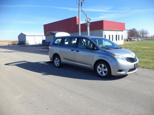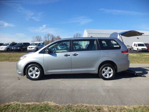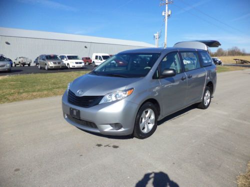 UP FOR SALE IS 2012 TOYOTA SIENNA WHEELCHAIR/HANDICAP RAMP VAN BY ASSISTED TRANSPORTATION SYSTEMS. THIS VAN HAS THE ATS ADVANTAGE RE L REAR ENTRY WHEELCHAIR CONVERSION. IT HAS THE 36 INCH WIDE RAMP SYSTEM FOR TRANSPORTING LARGER WHEELCHAIR OR SCOOTERS. THE VAN IS ADA COMPLAINT AND CAN BE USED FOR COMMERCIAL AND PERSONAL APPLICATIONS. THE RAMP IS A MANUAL,DUAL LOCKING, NON SKID ,ADA COMPLIANT UNIT. THE VAN HAS A COMPLETE Q-STRAINT WHEELCHAIR RESTRAINT SYSTEM WHICH INCLUDES FOR RETRACTABLE WHEELCHAIR STRAPS AND FULL BELT SYSTEM FOR ONE WHEELCHAIR. THE VAN JUST HAS HAD A ASE INSPECTION AND SERVICE THIS WEEK WITH NO PROBLEMS FOUND. THE VAN RUNS AND DRIVES GREAT AND THE TOYOTAS ARE THE BEST RIDING WHEELCHAIR VANS ON THE MARKET. THE VANS INTERIOR IS NICE WITH NORMAL WEAR AND THE EXTERIOR IS NICE WITH NORMAL WEAR. THE VAN HAS EVERYTHING NEEDED TO TRANSPORT ONE WHEELCHAIR INCLUDED IN THIS SALE. THE CONVERSION HAS A THREE YEAR WARRANTY FROM ATS AND THE VAN IS UNDER WARRANTY AT TOYOTA. THE VAN IS AVAILABLE FOR TEST DRIVES AND INSPECTIONS AT OUR LOCATION BEFORE AUCTION ENDS. WE CAN FIANANCE THIS VAN TO PERSONS WITH APPROVED CREDIT BUT YOU MUST CALL BEFORE BUYING FOR CREDIT CHECK AND APPROVAL.. PLEASE HAVE ALL FUNDS SECURED BEFORE BUYING AND BE READY TO MAKE THE 500.00 NON REFUNDABLE DEPOSIT WITHIN 24 HOURS OF AUCTION ENDING. FULL PAYMENT IS DUE WITHIN 7 DAYS OF AUCTION ENDING. WE CAN SHIP UNIT ANYWHERE AT BUYERS EXPENSE BUT UNIT MUST BE PAID IN FULL BEFORE IT SHIPS. WE ALSO DELIVER VANS TO THE NASHVILLE TN AND LOUISVILLE KY AIRPORTS FOR BUYERS DAILY. FOR QUESTIONS EMAIL OR CALL ROB @ 270 634 1466 OR RON @ 270 634 0721. REFER TO LOT 1977 WHEN CALLING. THANKS