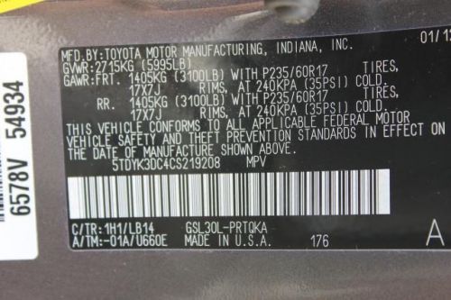 VIN (Vehicle Identification Number): 5TDYK3DC4CS219208