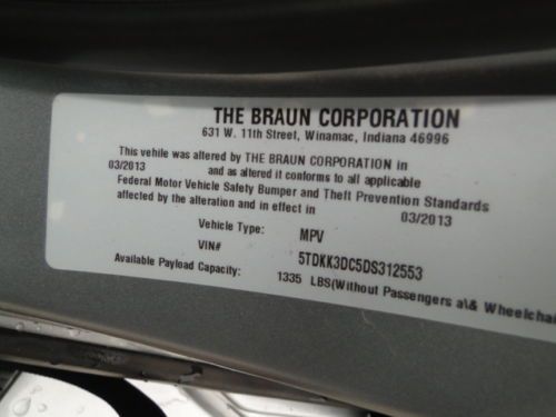 2013 Toyota Sienna Le Van Braun Handicap Van No Damage Rebuilt Salvage Title on 2040-cars