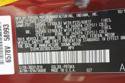 VIN (Vehicle Identification Number): 5TDYK3DC9DS303204