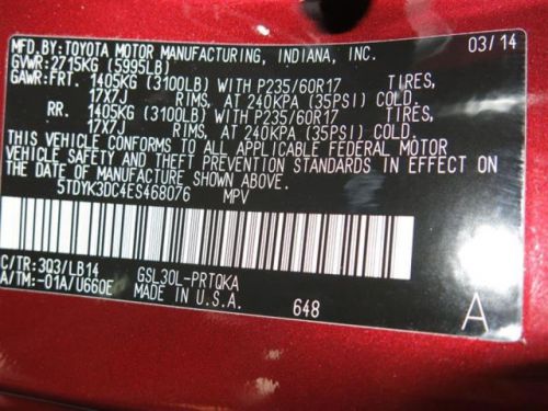 VIN (Vehicle Identification Number): 5TDYK3DC4ES468076