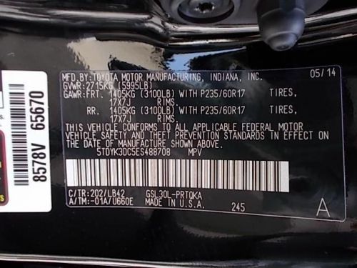 VIN (Vehicle Identification Number): 5TDYK3DC5ES488708