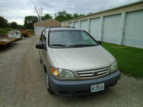 Toyota Sienna, 2002, with 238k miles, still running strong! Recently professionally detailed and ready for another 200k! Clear title! Questions, contact Jason @ 816-258-2493. The van is available locally in Harrisonville, Missouri and can be see by appointment with Jason.