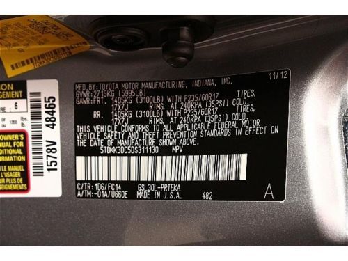 2013 toyota sienna limited mini passenger van 5-door 3.5l