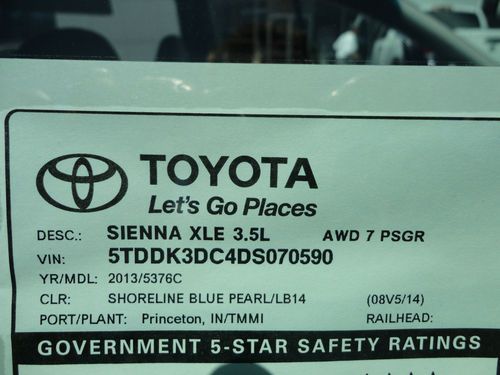 New 2013 Sienna Xle Awd Navigation Sunroof Rear Dvd Tv Camera Shoreline Blue on 2040-cars