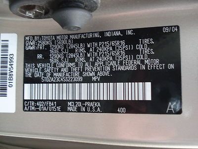 2005 toyota sienna ce 8 passenger dual a/c abs brakes roof rack