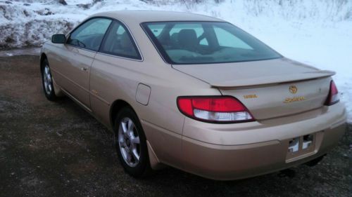 2000 Toyota Camry Solara - LOW MILES 99K - 3.0 V6 W/ 5 SPEED MANUAL TRANSMISSION (RARE) - GOLD DUST METALLIC WITH GOLD TRIM PACKAGE AND TAN INTERIOR - REAR SPOILER, KEYLESS ENTRY, AIR CONDITIONING, DUAL AIR BAGS, - AM/FM STEREO RADIO WITH CD & USB LINE IN, - POWER WINDOWS AND LOCKS, TILT STEERING, FRONT BUCKET SEATS - ALLOY WHEELS - INTERVAL WIPERS, DRIVER SIDE REMOTE MIRRIOR, POWER STEERING - CRUISE CONTROL, FOG LAMPS, REMOTE TRUNK RELEASE, CENTER CONSOLE - REAR WINDOW DEFROSTER, INTERMITTENT WIPERS - TRAILER HITCH FOR BIKE RACK - ONE OWNER CAR THAT RUNS AND DRIVES LIKE NEW. - ALL RECIEPTS INCLUDED WITH RECENT BRAKES, BELTS, BATTERY ETC |