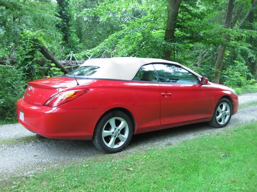 This is a 2006 Toyota Solara SLE convertible that is automatic with power windows, locks, driver's seat and convertible top. It currently has 116,735 miles that may go up due to use. It had an oil change under 2,000 miles ago and there are no leaks noted on the car. The convertible top was replaced in March, 2013. The front leather seats have some wear to them but there are no rips or tears in the leather. The rear seat looks as though it has no been used hardly at all. There is some surface scratches on the exterior of the car and there is no rust on it. The tires are relatively new. All of the electrics work as they should. Also included is the tonneau cover that goes over the convertible top when it is down. This also looks new. Buyer to pay a $500 deposit within 24 hours of the auction end. Please note that the Solara is located in Charleston, West Virginia.