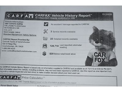 1987 Toyota Supra Turbo , Service Records , No Reserve on 2040-cars