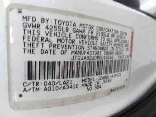 1994 TOYOTA SUPRA W-SPORT ROOF VIN: JT2JA82J0R0018333 HATCHBACK 2 DR 3.0L L6 FI REAR WHEEL DRIVE Standard Equipment | Safety OptionsStandard Equipment Power Windows, Power Steering, Air Conditioning, AM / FM Cassette, Power Brakes, Tilt Wheel, 6-digit Odometer Safety Options 4 wheel ABS, Dual front air bags/active (manual) belts | |||
