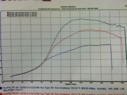 settings ranging from 11-33 PSI setting 1: 510 rwhp, setting 3: 721