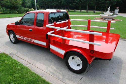 Wheel base extended 12". Custom built flat bed with California custom duallie bud wheels. Great driver. Runs & drives great. Would be a nice addition to your custom shop as a shop truck. One of a kind!started with a 1995 Toyota supercab,extended frame behind cab 12 in,custom built flat bed very well constructed to last,added custom bud duallie wheels,interior has factory bucket seats,rear jump seats,factory air conditioning,new am/fm radio ,why build an older fourteys something with no cab room,etc ,jump in this truck & turn on the air,lots of room,really motors along,