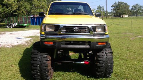UP FOR AUCTION IS THIS AWESOME YOTA,THIS TRUCK HAS BEEN LIFTED 21 INCHES (18 SUSPENSION 3 BODY)YANKED OUT THE 4CYL. AND INSTALLED A 400 HP 355 SBC MOTOR,EQUIPPED WITH PRO BILLET DIST,TAYLOR WIRES,HEADERS ELDELBROCK INTAKE AND CARB, SMALL CAM,HYPER PISTONS SCAT CRANK AND RODS,THIS BEAST WILL RUN!!!TRANSMISSION IS A TURBO 400 LINKED TO A NP205 TRANSFER CASE (BULLETPROOF)THIS TRUCK ALSO HAS A SMALL STALL CONVERTER,AND MOST OF THE 4X4 TRUCKS LIFTED THE 4X4 DONT WORK --THIS ONE DOES,HAS NEW 4X4 HUBS ALL NEW SHOCKS FRONT AND REAR AND ALSO NEW STEERING STABILIZER,DISK BRAKES POWER STEERING,JUST REBUILT FRONT AXLE WITH NEW BEARINGS AND SEALS,PAINT LOOKS GREAT,LIKE NEW TIRES AND WHEELS,HAVE RECEIPTS AND PICS TO SHOW REBUILT,THIS 355 WILL TURN THESE 44/18.50/15 SUPER SWAMPER BOGGERS NO PROBLEM AND IS A BLAST TO DRIVE,MY LOSS YOUR GAIN FOR MORE INFO CALL 832-877-1031