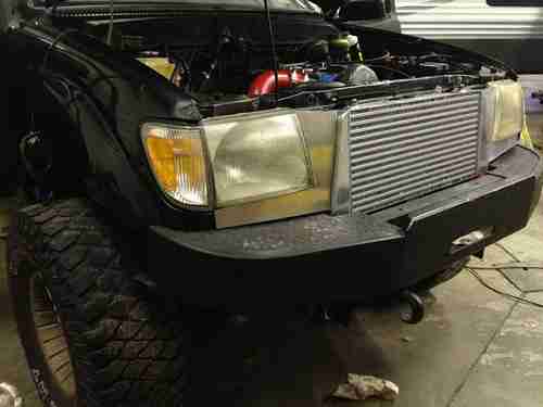 This is truly a one of kind vehicle, no other exists in the world, as far as i have been able to tell/research. I am a perfectionist to a fault, and since I was building this, my 5 year long dream truck idea, I took care in making everything as solid and perfect as possible, going to extra lengths to ensure the truck was PERFECT in its function. The aesthetics took a backseat to the life of the truck- motor, transmission, drivetrain, as well as driver comfort. This 'Dream Truck' of mine is a 2000 Toyota Tacoma extended cab TRD offroad package, 5 speed manual 4X4 pickup truck with an OM617 Mercedes Benz 5 cylinder Turbo Diesel motor powering it. The motor started out STRONG, from a 1985 300D with 180K miles, the highest horsepower OM617 ever produced. To this I added 3" straight pipe from the turbo back, a HUGE oversize intercooler (functions as the grill) and the infamous Monark injector nozzles. These mods bump the 125 hp motor to around 160, with ~220 ft lbs of torque. I have never had it dyno'd, just my best guess from starting specs. Truck had a previous salvage title from a LIGHT front end accident which broke the radiator, spilling the coolant and blew the motor. So it was a perfect candidate for the motor swap. I invested over $5,000 in addition to the truck, replacing numerous parts along with the motor swap. It basically underwent a 3 month full restoration, myself for 2 months at 50/hrs a week and 1 month 40 hr weeks by two people, so just over 500 man hours was invested into this truck. the motor was pulled and engine bay prepped. Interior was completely gutted to the metal, all new soundproofing was added to the floors and doors so it could quietly run big tires (and it does) new carpet installed, dash disassembled and cleaned, everything got to working order. a few small rust spots existed but were all nipped in the bud before they could become anything close to a problem (truck was essentially rust free starting out, and no frame rust whatsoever) there is only one small rust spot on the passenger side pillar that still needs fixed. The entire underside of the truck was disassembled, ground where any light surface rust was, treated with rust reformer and then undercoated for additional sound protection. The motor was gone through just as well. Every single gasket and seal on the motor was replaced with the exception of head gasket (this took three days alone, scraping every last bit of old gasket material off until my fingers were raw) even front and rear mains were replaced (although the rear main still has a very slow drip, thats the only leak, bummer. The Benz motors have chronic rear main drips. This is only about 3 droplets per week)